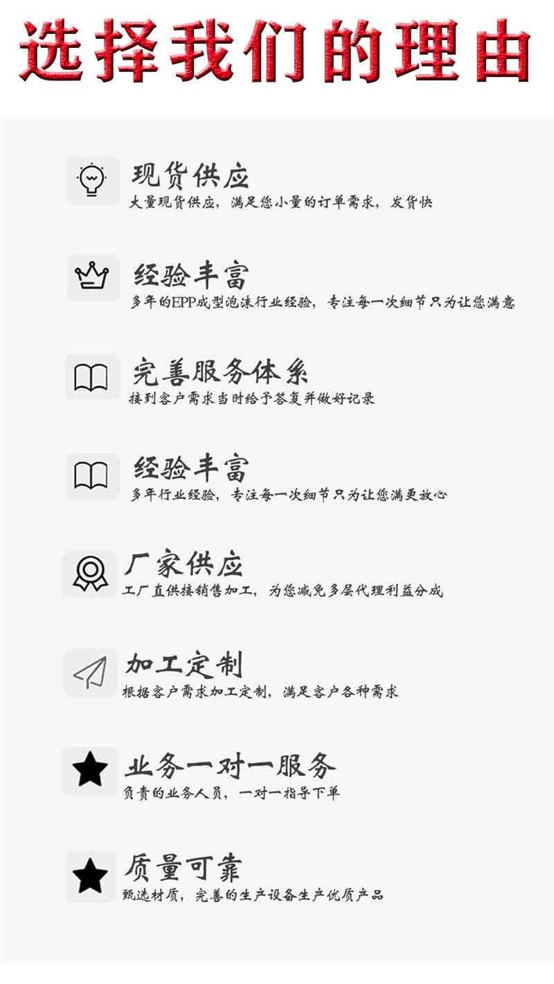 富揚擁有專業團隊,豐富的生產經驗保證客戶的產品質量和效率,富揚專注EPP包裝制品行業多年。擁有專業售后團隊,為您各種的問題答疑解惑,有什么不明白的不懂的都可以咨詢我們的客服,給您滿意答復。