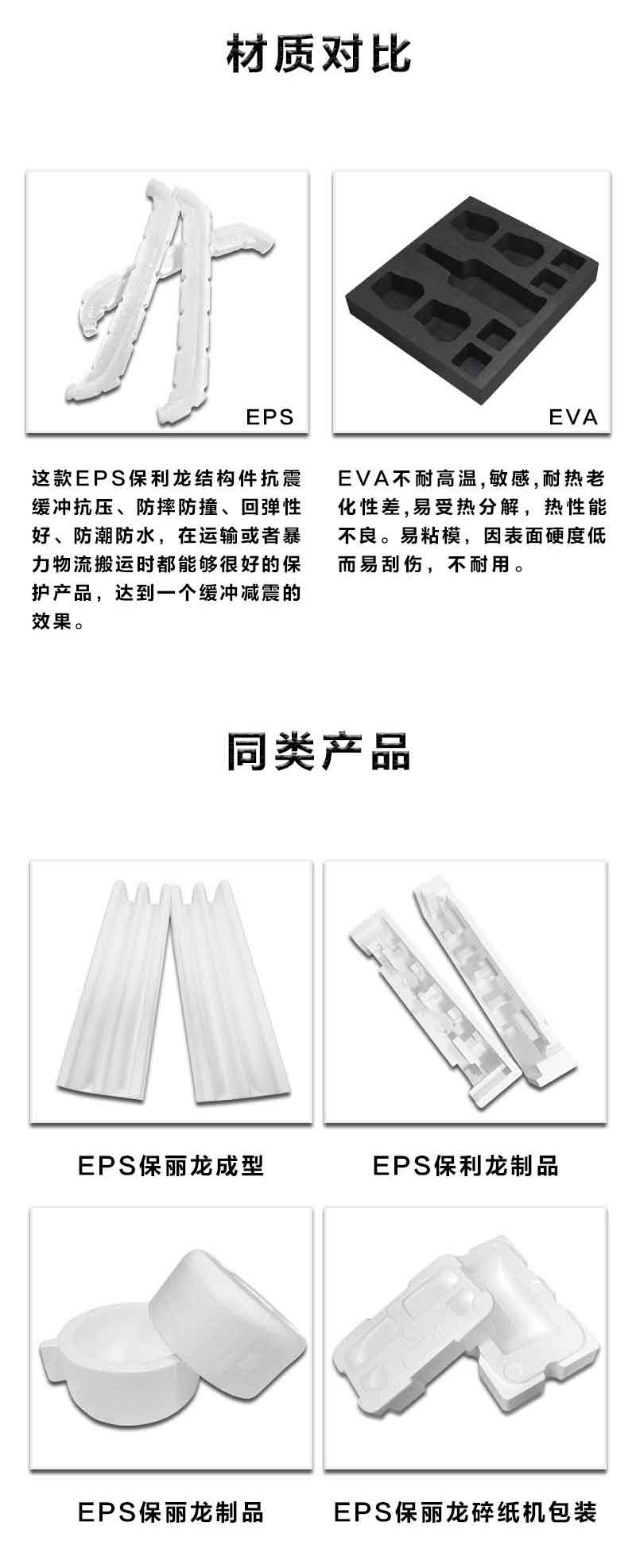 EPS聚苯乙烯抗震防摔、質輕、抗老化以及尺寸精準,隔熱,環保,易包裝。